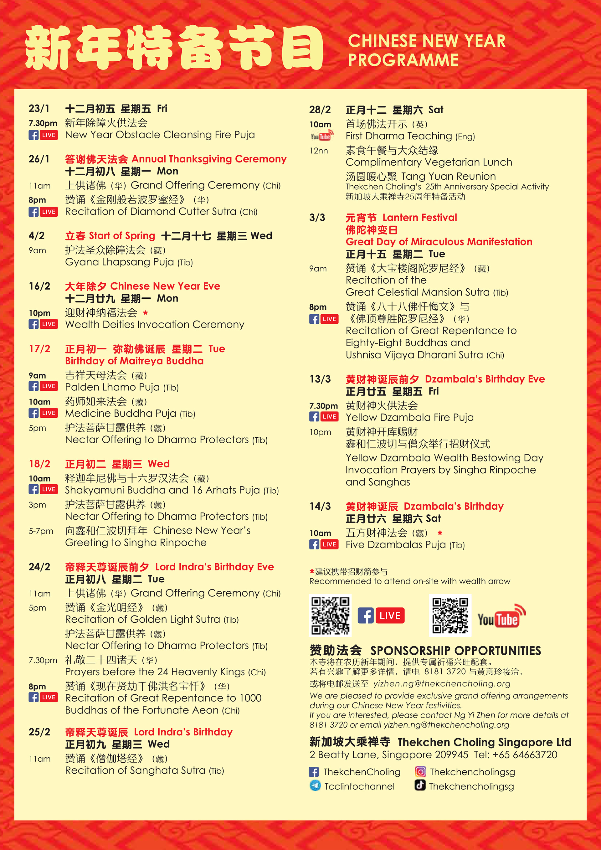 We warmly invite you and your loved ones to join us in celebrating a joyous and meaningful CNY at Thekchen Choling Singapore.